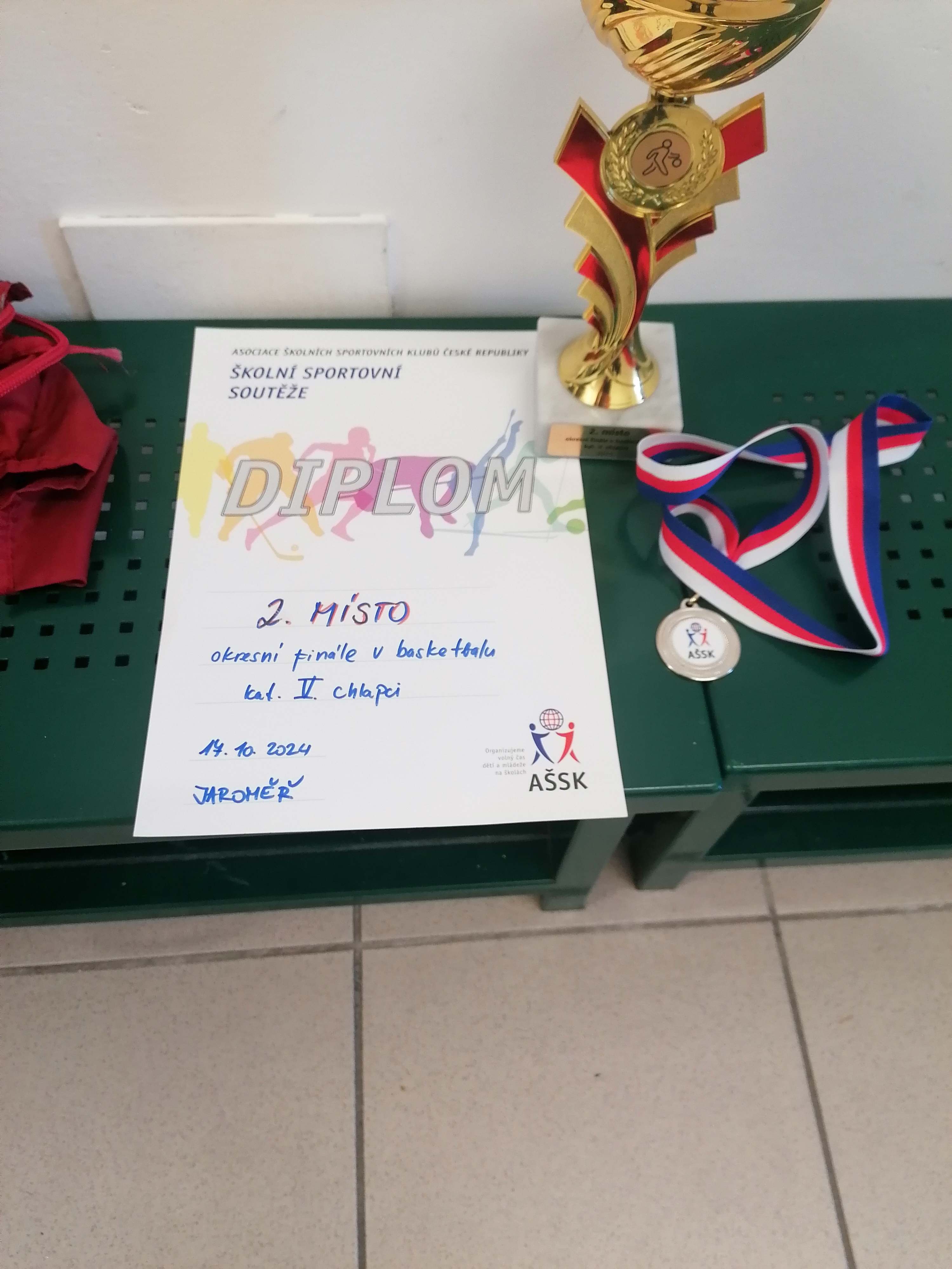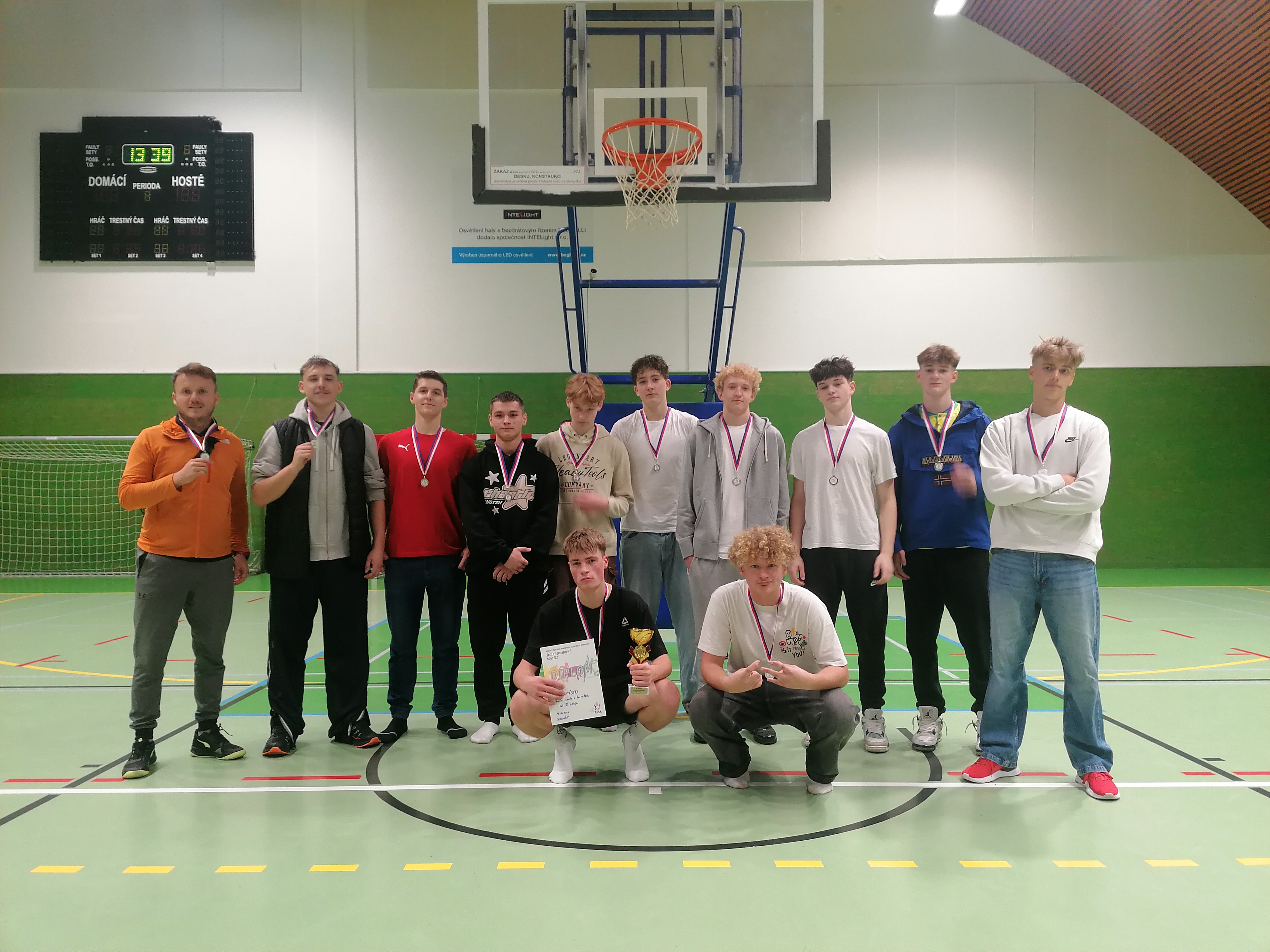 Ve čtvrtek 17. října se naši vybraní žáci zúčastnili středoškolského basketbalového turnaje v Jaroměři. Celkem se utkalo šest družstev a hrálo se systémem „každý s každým“. Naši hráči předvedli skvělý výkon a po napínavých zápasech se umístili na krásném druhém místě. Všem zúčastněným děkuji za kvalitní a vzornou reprezentaci naší školy.