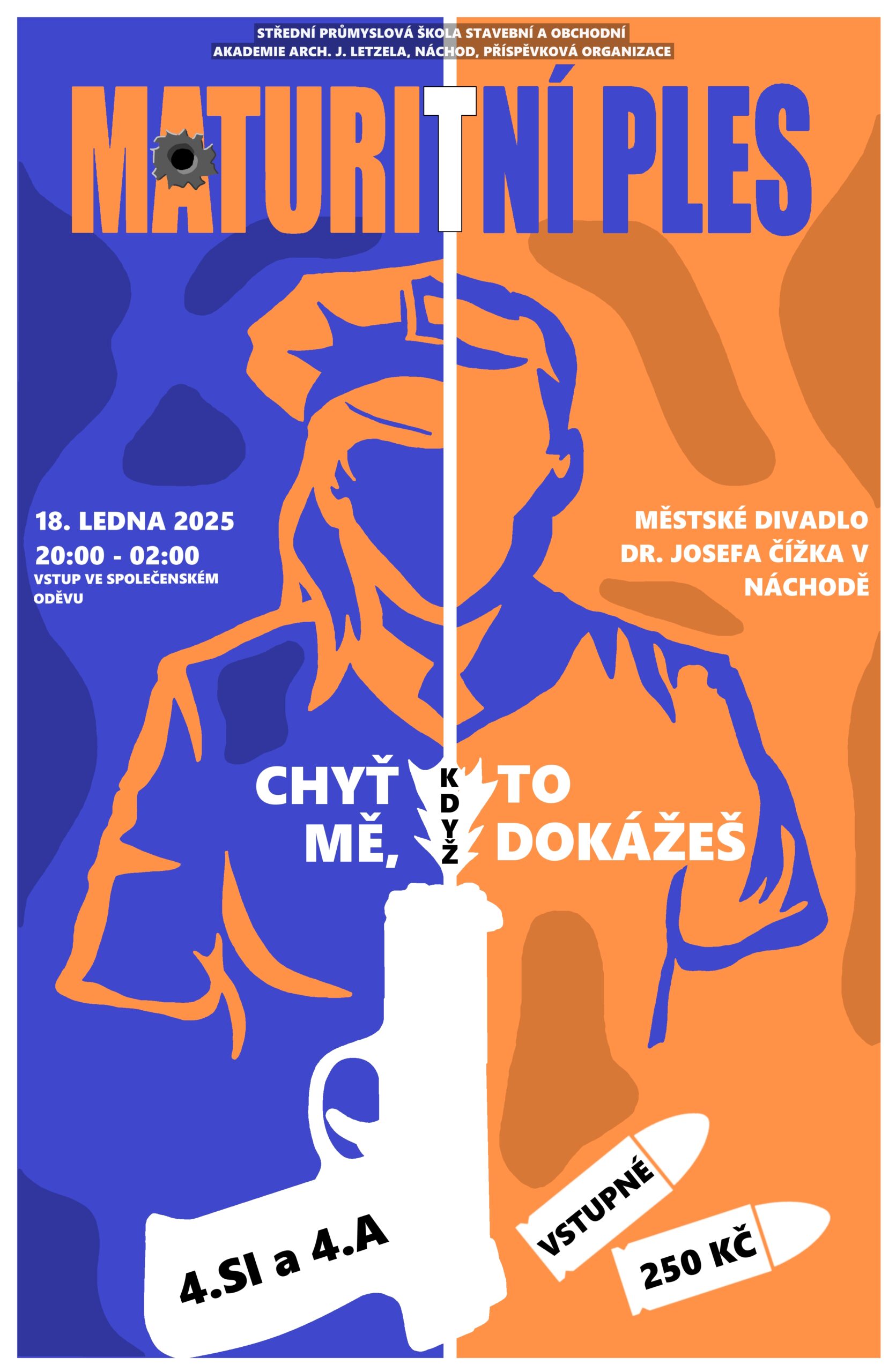 Třídy 4.SI a 4.A Vás zvou na maturitní ples – Chyť mě, když to dokážeš. Vstupenky lze zakoupit i v sobotu v Beránku.