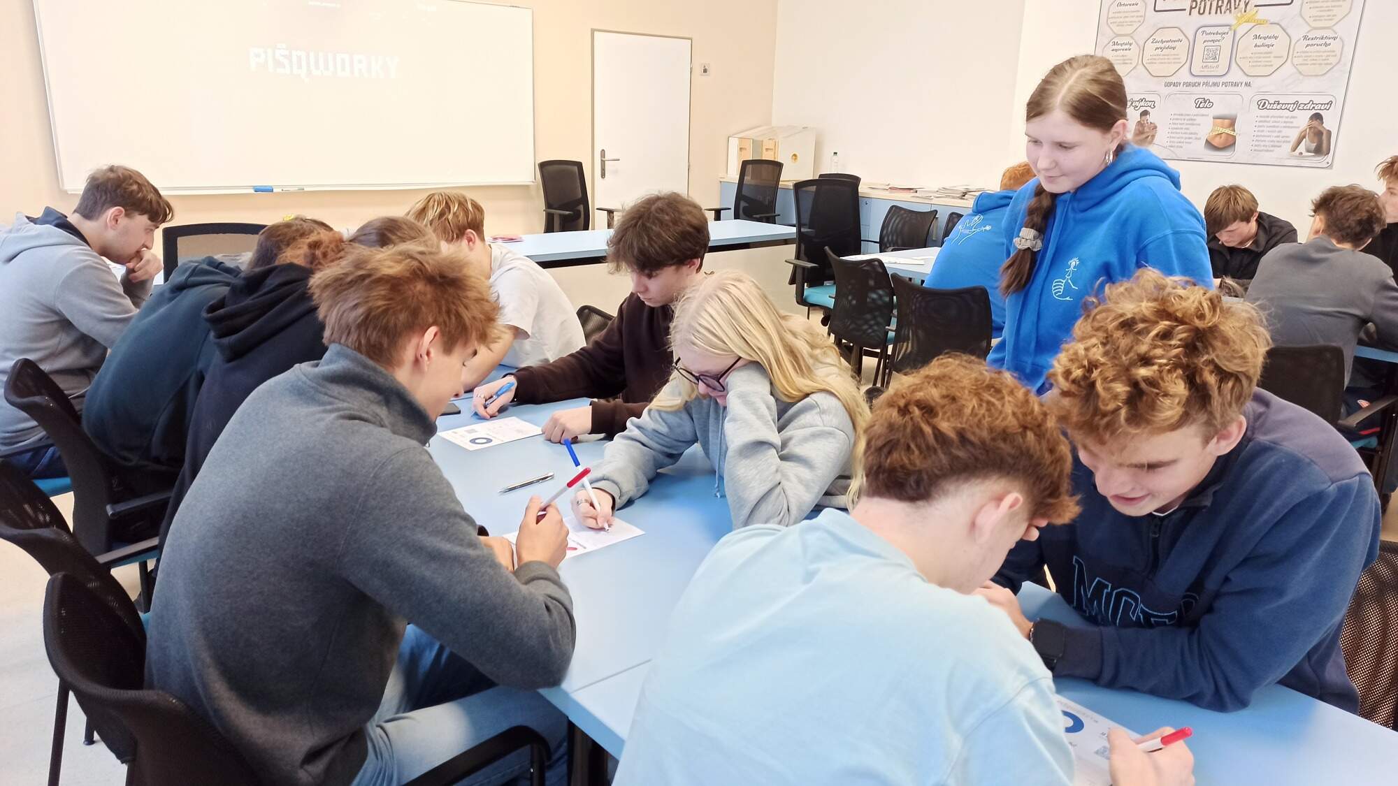 V pátek 14.11.2025 se na naší škole uskutečnilo oblastní kolo v logické hře PIŠQWORKY. Turnaj organizuje spolek Student Cyber Games a Masarykova universita Brno. Celkem soutěžilo 19 družstev ve dvou kategoriích. V kategorii středních škol reprezentovaly SOA Náchod čtyři týmy. Družstvo “TEAM Frajvald“ ve složení Viktória Grohoľová, Denisa Koštrnová (obě 2.B),Filip Vávra (2.SI), kapitán Jakub Frajvald (3.S), Josef Vlček (3.SI) a Michal Stránský (4.SI) se ze skupiny probojovalo až do play off. V semifinále vyřadilo družstvo z Gymnázia Jaroslava Žáka z Jaroměře. Ve finále “TEAM Frajvald“ v souboji o první místo těsně podlehl Jiráskovu Gymnáziu Náchod. Ve velké konkurenci je druhá příčka skvělý úspěch. Turnaj jsme si všichni moc užili, nechyběly napínavé momenty a 29. 11. se v krajském kole v Hradci Králové pokusíme dojít co nejdále.