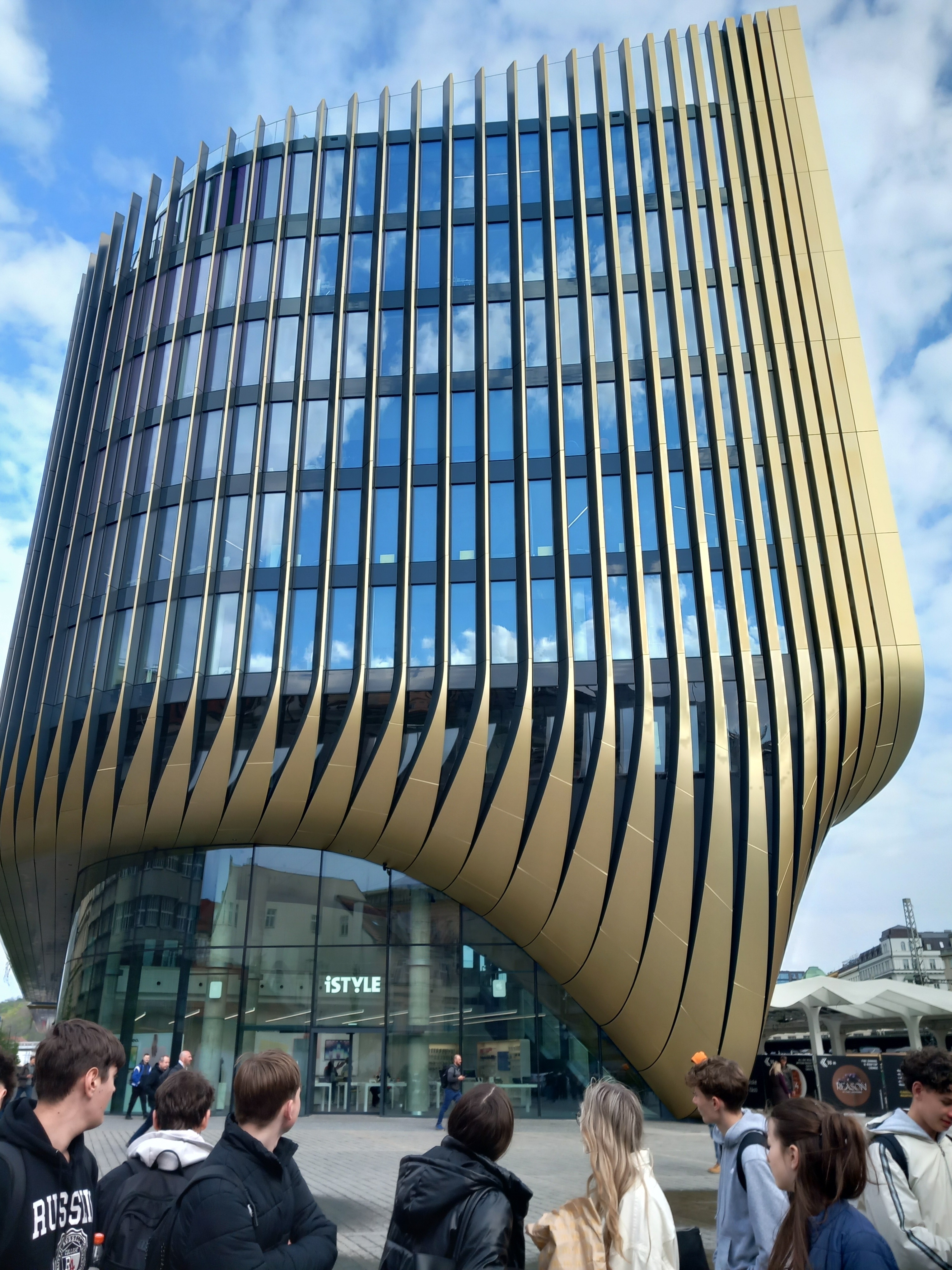 Hned vedle se nachází Obecní dům, nádherná secesní budova známá svou bohatou výzdobou a koncertní síní. Naši exkurzi jsme zakončili v moderním obchodním centru Palladium, které vzniklo přestavbou bývalých kasáren. Cestou na hlavní nádraží jsme si ještě udělali poslední zastávku u jedné z nejmodernějších staveb v Praze, známé jako Masaryčka.