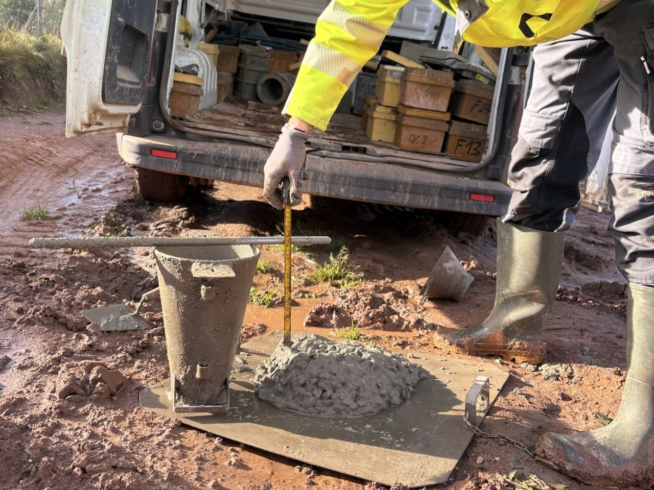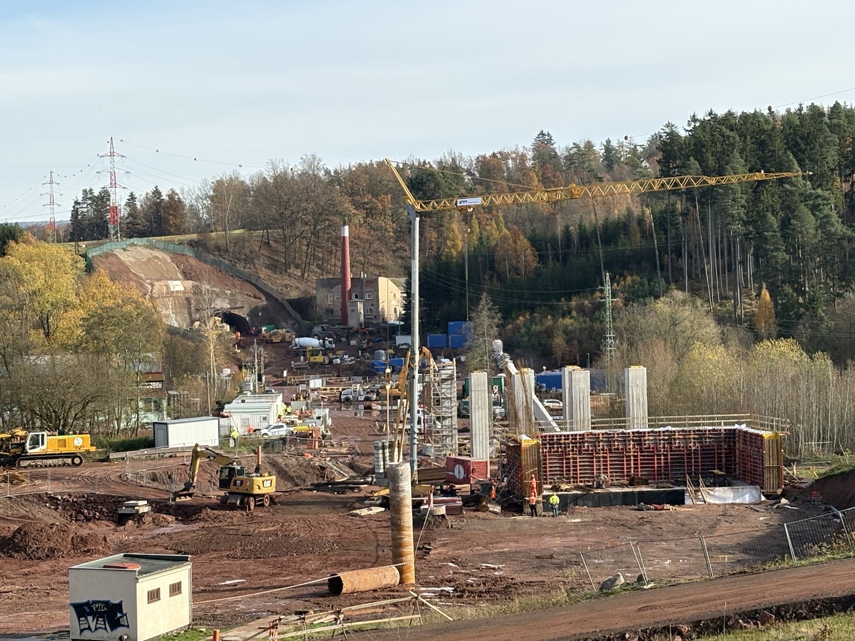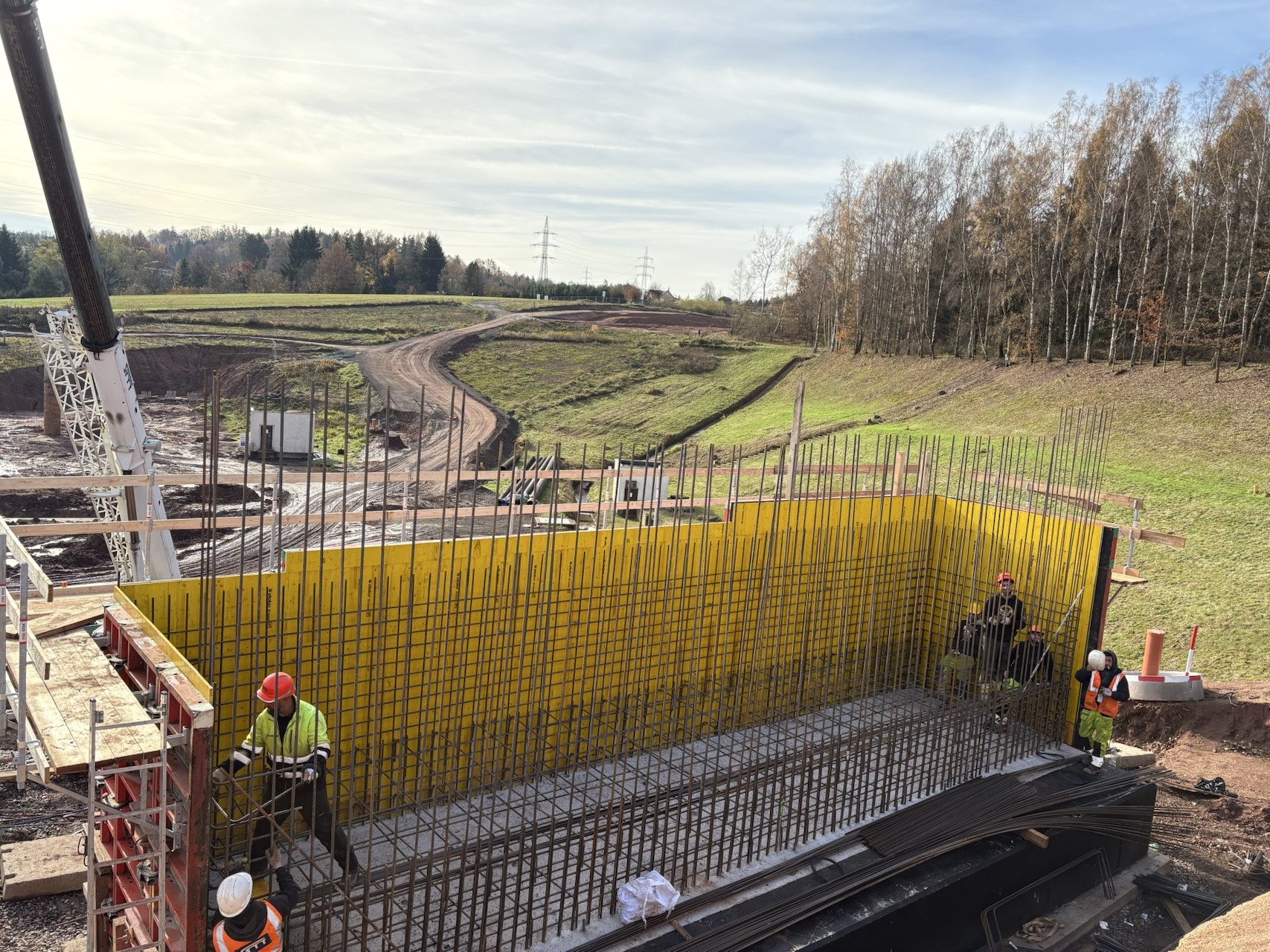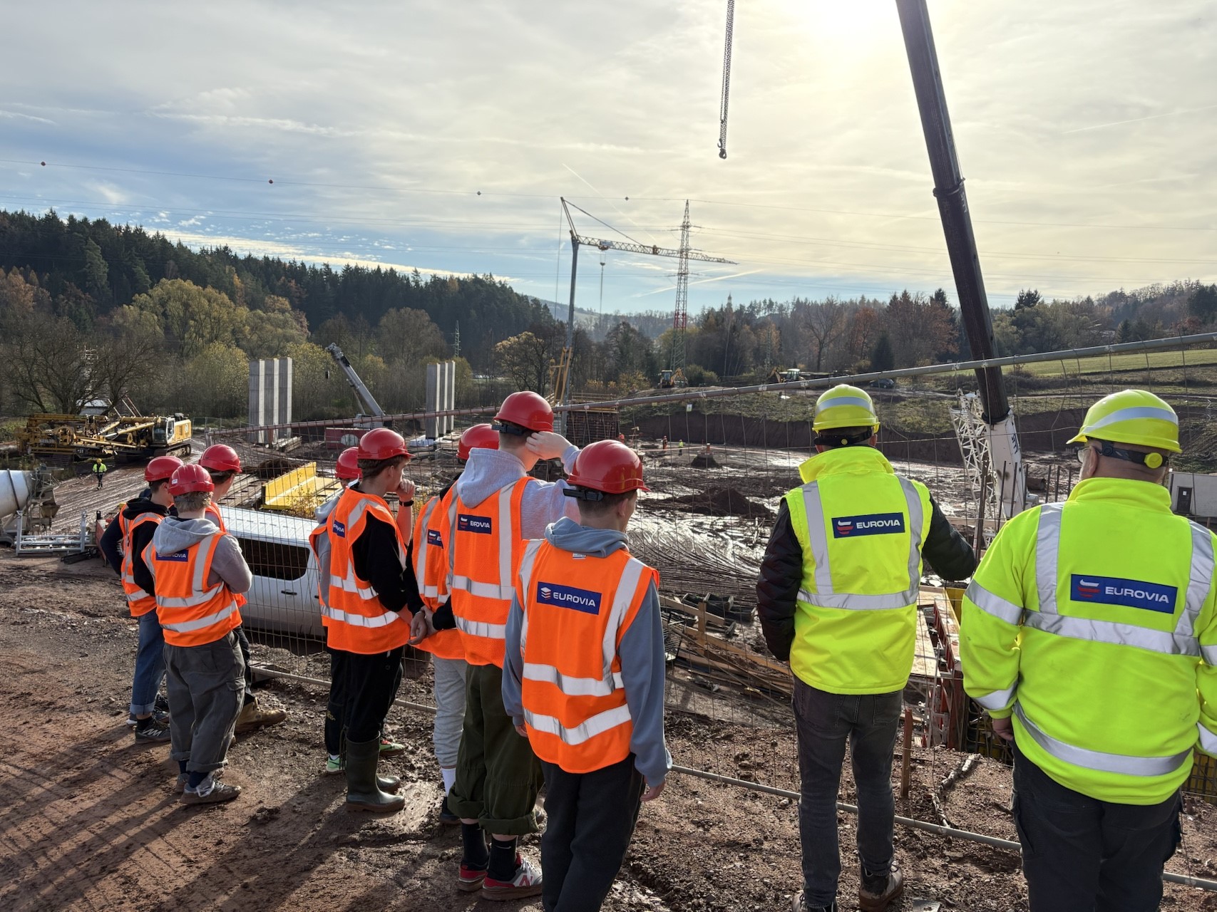 Dne 5.11. 2025 se studenti 3. ročníku byli podívat na stavbu náchodského obchvatu v Dolní Radechové. Po celou dobu exkurze se jim věnoval hlavní stavbyvedoucí Ing. Martin Branda ze společnosti EUROVIA CZ a.s. Na hlavní trase viděli, jak pokračují zemní práce včetně zhotovení zářezů, na stavebních objektech mostů odtěžování zemin, vrtání a betonování pilot. Zaujalo je rovněž provádění zkoušky zpracovatelnosti betonu-sednutí kužele v terénu. Měli možnost vidět i systémová bednění a vyztužování pilířů. Přestože bylo počasí slunečné, staveniště bylo velmi blátivé, ale to k realitě stavařů patří. Bude velmi zajímavé nadále sledovat celou rozsáhlou stavbu.